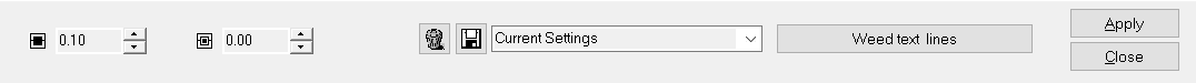Power Weed: Wählen Sie diese Option, um einen Umrandungsrahmen mit horizontalen und vertikalen Mittelentgitterungslinien zu erstellen. Legen Sie den Randoffset und die Zeilenüberlappung fest. Klicken Sie auf die obere oder die seitliche Kante des Objekts und ziehen Sie die Maus horizontal oder vertikal, um neue Entgitterungslinien zu erstellen. Click the "Weed Text Lines" button to toggle weeding lines through text.