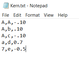 Auto-Kerning allows users to automatically adjust the kerning between specific letter pairs using a simple text file. To begin the process, the first step is to prepare a text file to use in the Auto-Kerning process. The text file must adhere to specific rules to be read properly for Auto-Kerning: