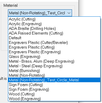 Once the file is opened into the software, the stored material library settings can be seen as the default under the Tool Options window.